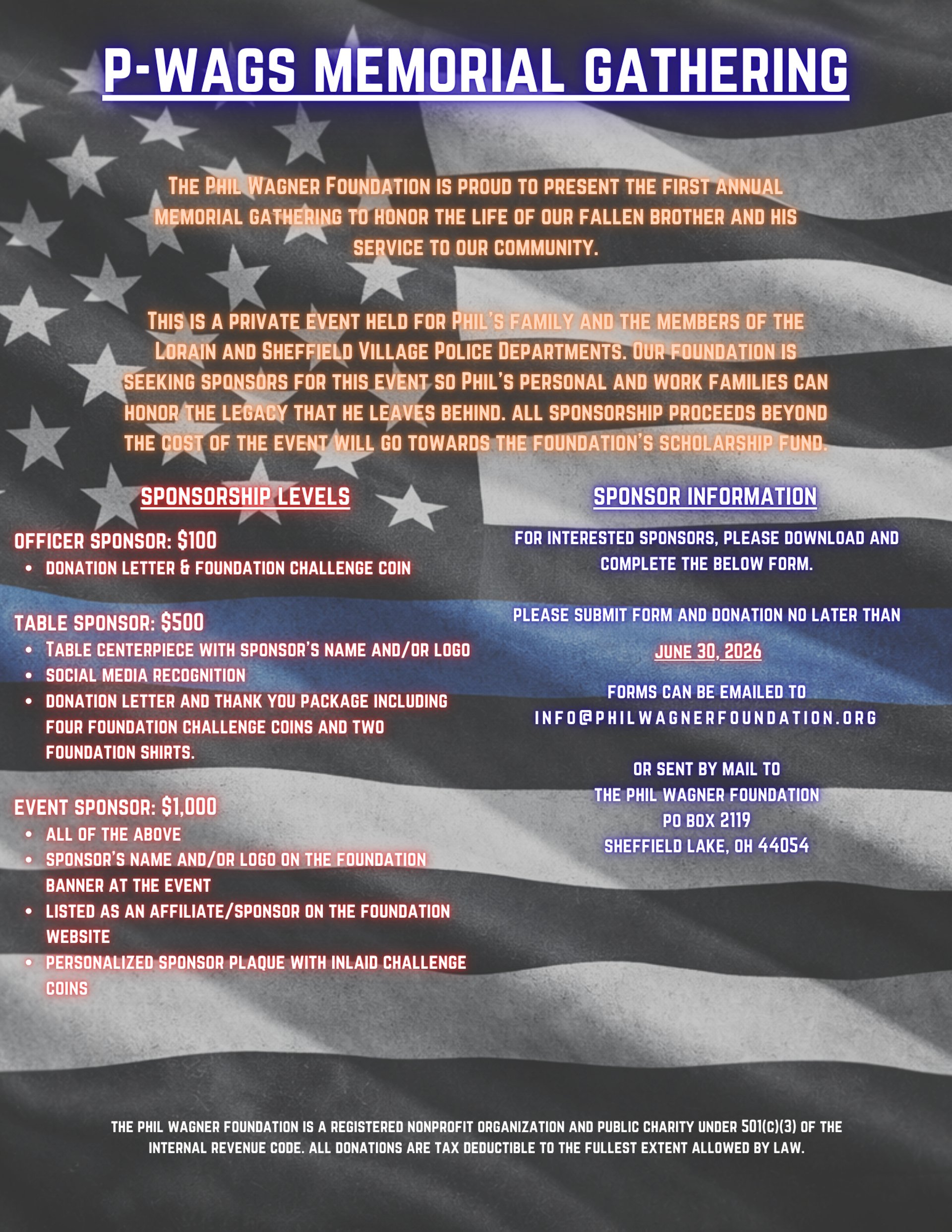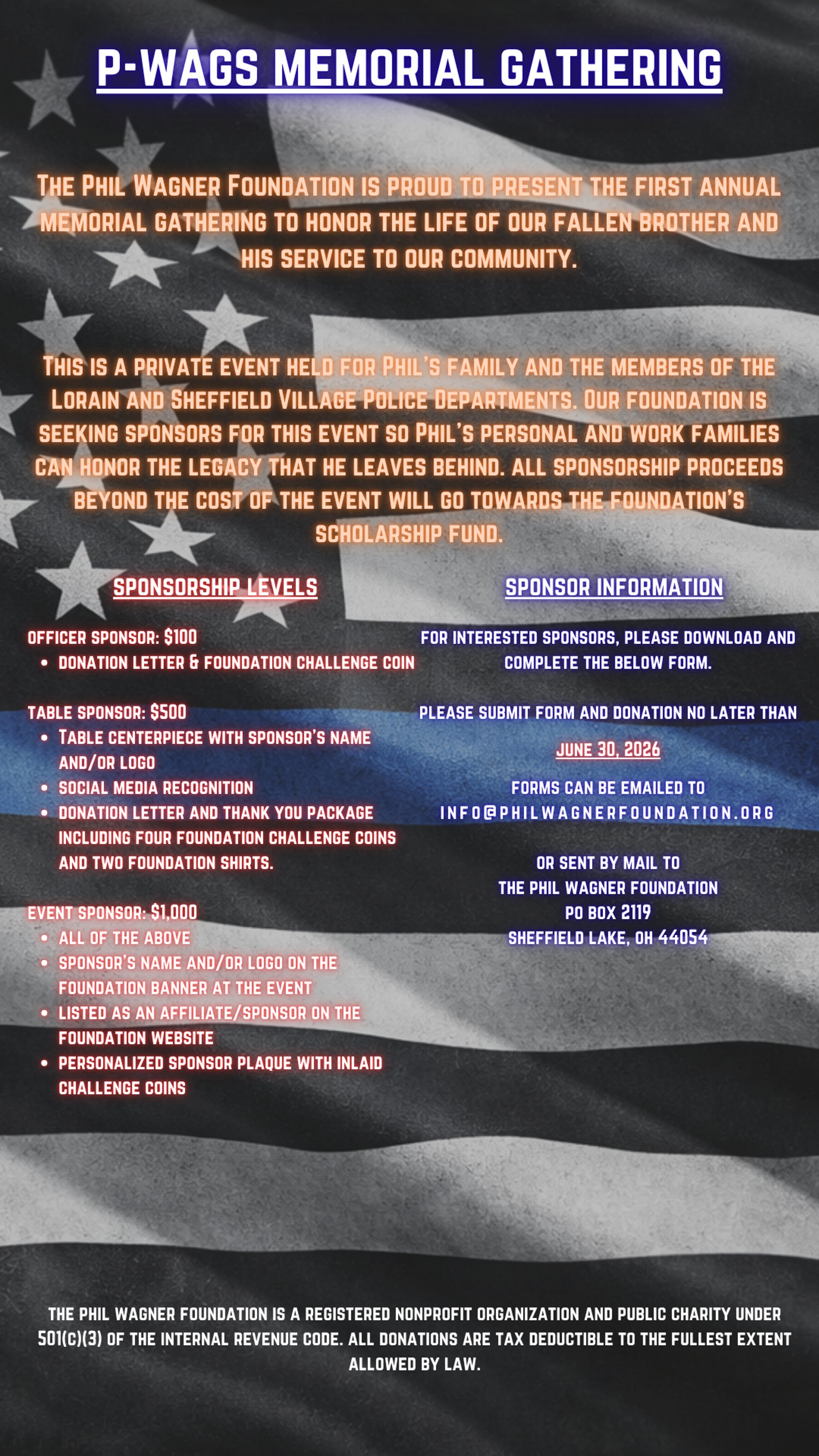 The Phil Wagner Foundation is a 501(c)(3) tax-exempt nonprofit organization.